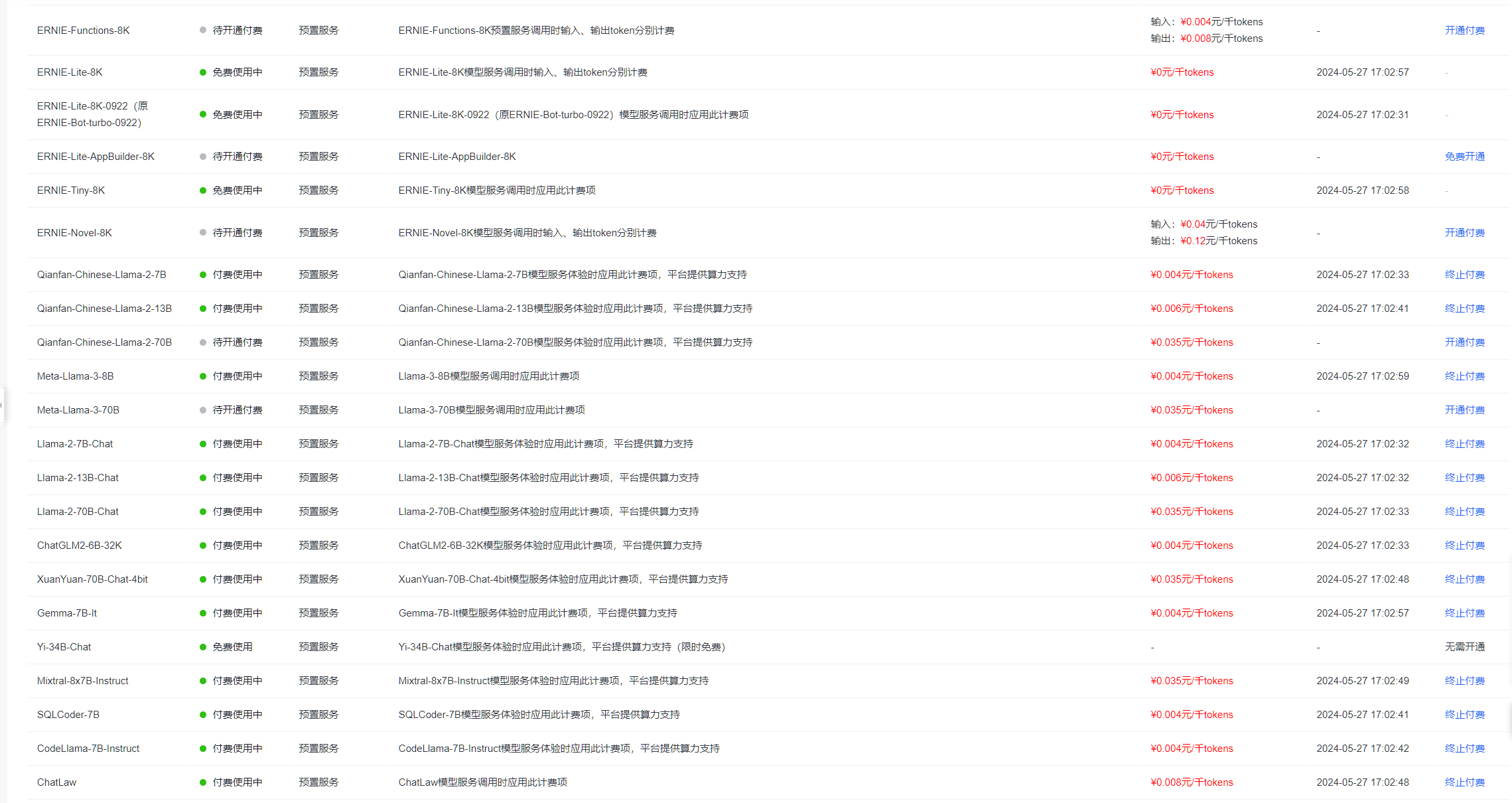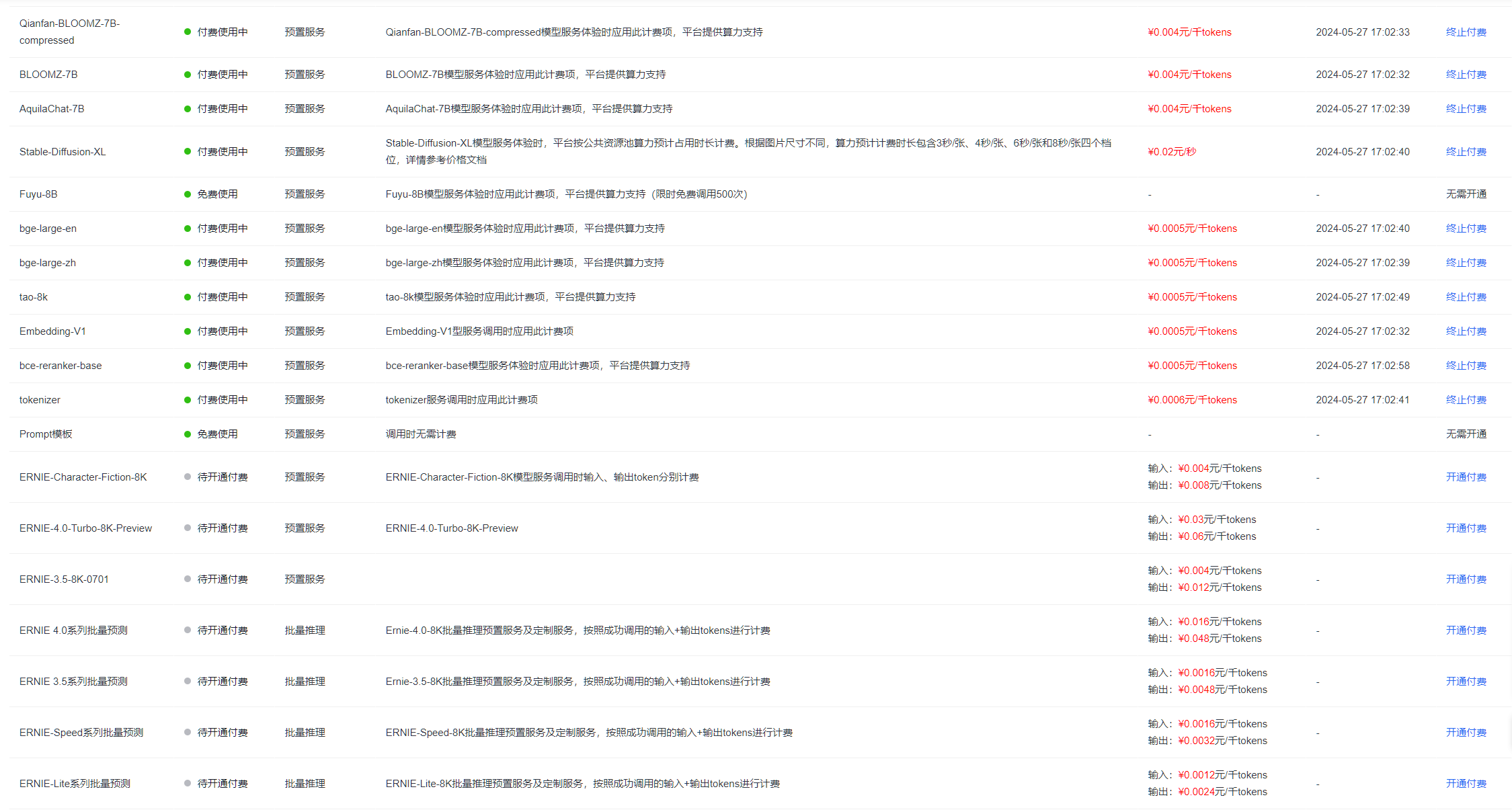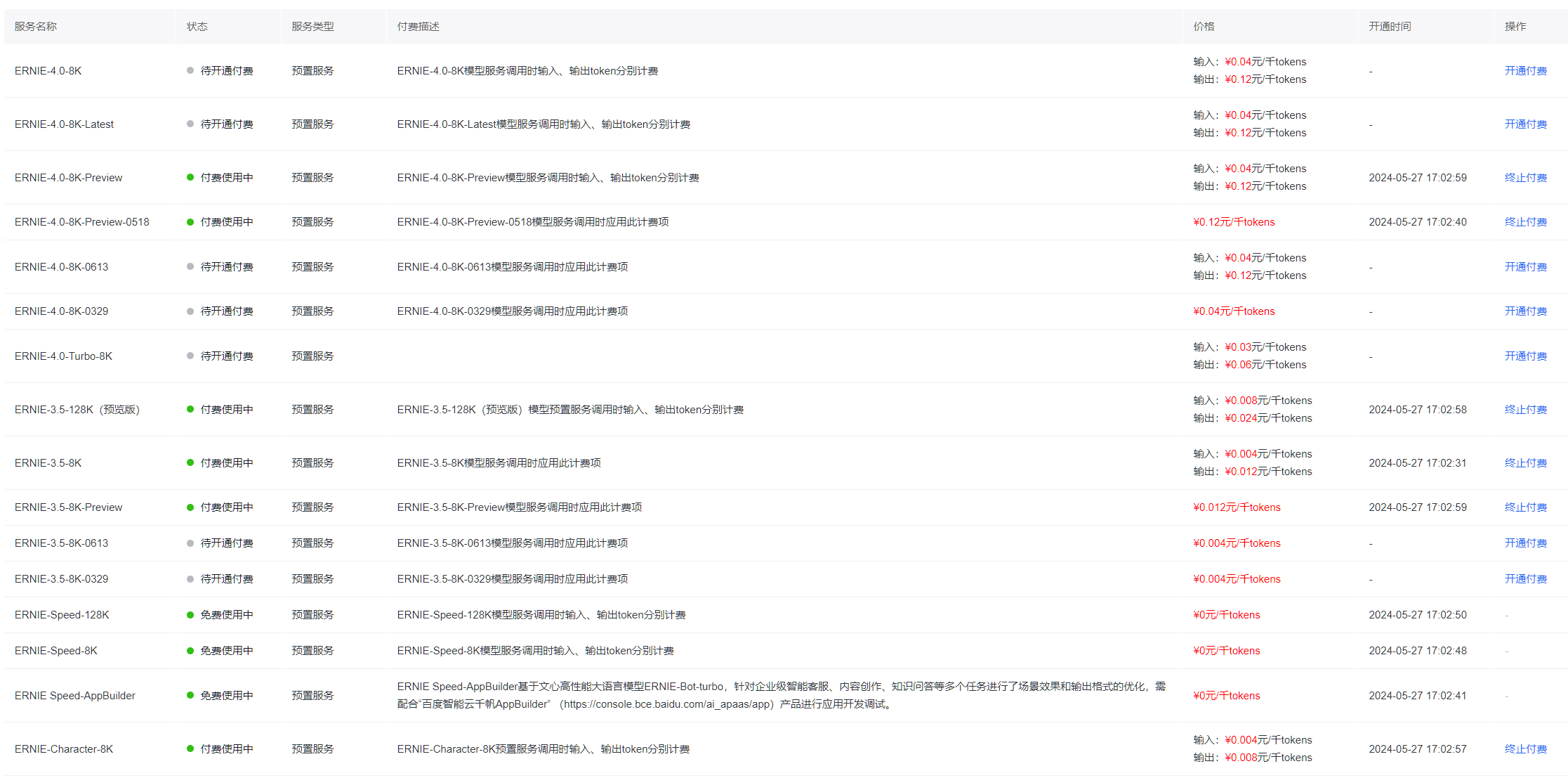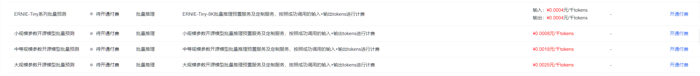 - ERNIE-4.0-8K:约 ¥ 0.04 / 千 tokens(示例档位)