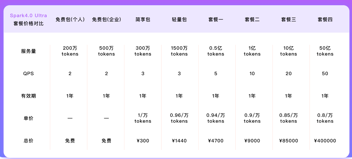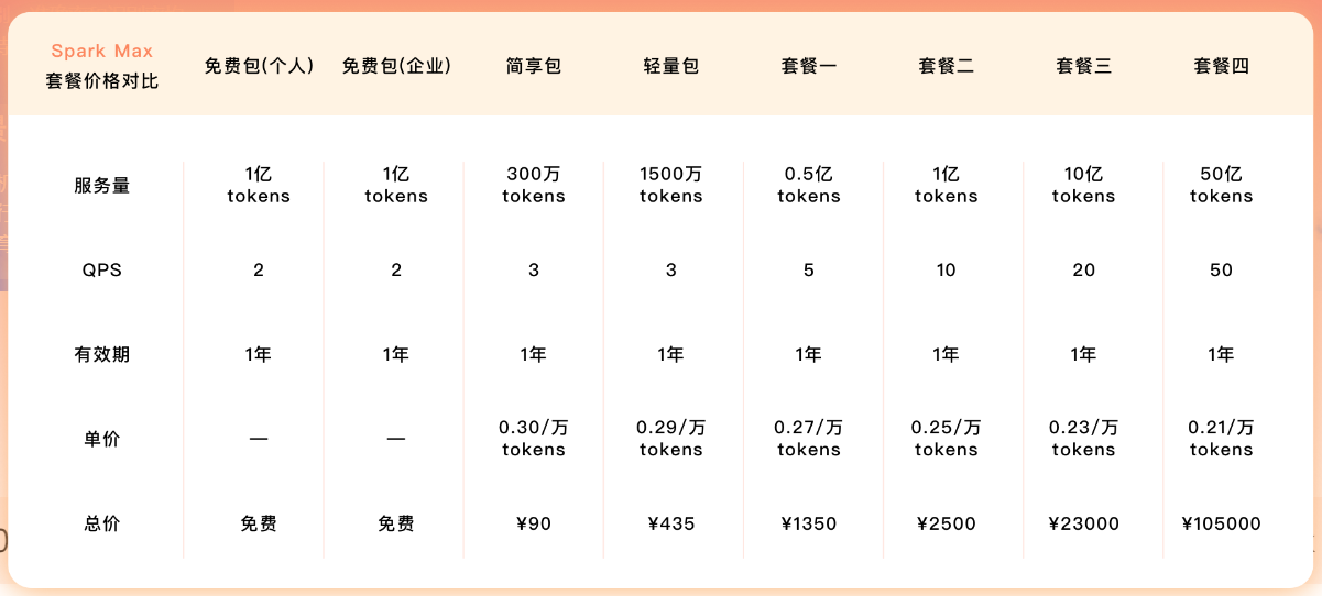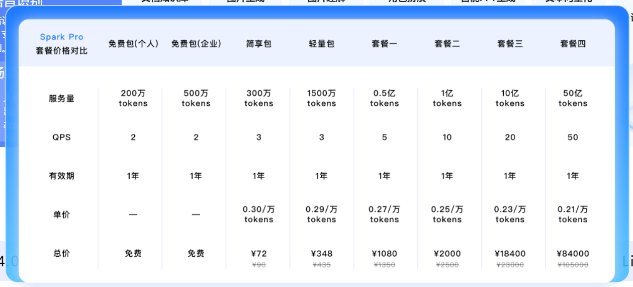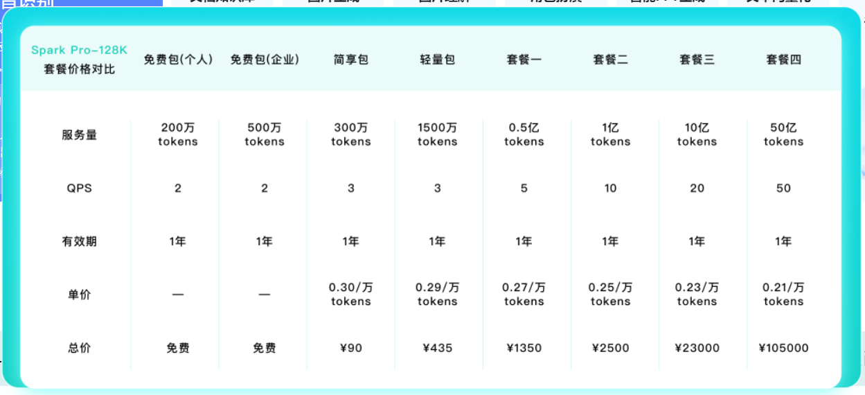 星火的部分模型经常以“万 tokens”为计费单位,并提供多档性能组合,典型如 Spark-Pro-128k 和更高规格的 QSpark 4.0 Ultra 等。