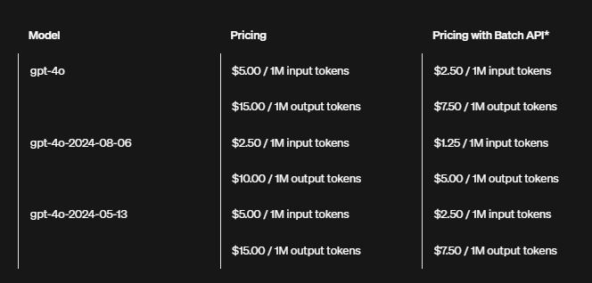 在海外生态中,OpenAI 依旧是“定价锚点”之一。以常见的 gpt-4o 和 gpt-4o-mini 为例,它们一般按照 “美元 / 百万 tokens” 来报价。