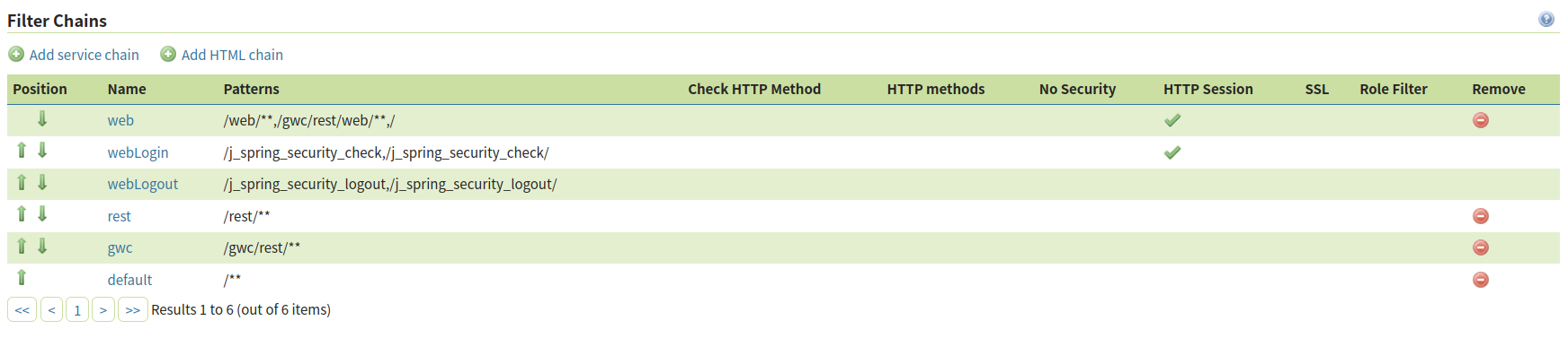 如果你希望使用 OAuth2/OIDC 保护所有 GeoServer 服务和管理界面,可以把 OIDC Filter 添加到以下所有 Filter Chains: