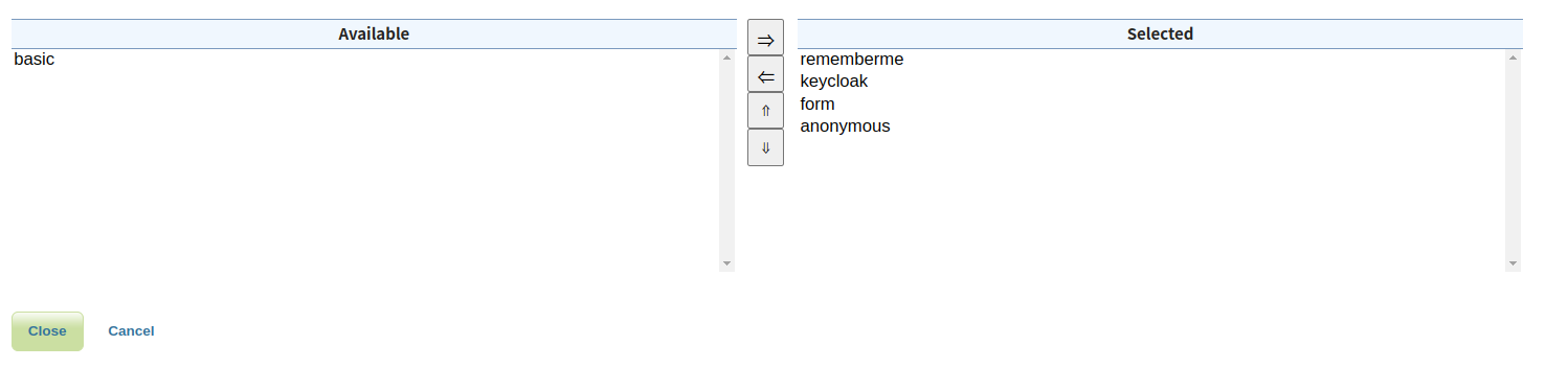 Available列表中你的 OIDC Filter(可能显示类似oidcKeycloak)移动到右侧Selected列表 -