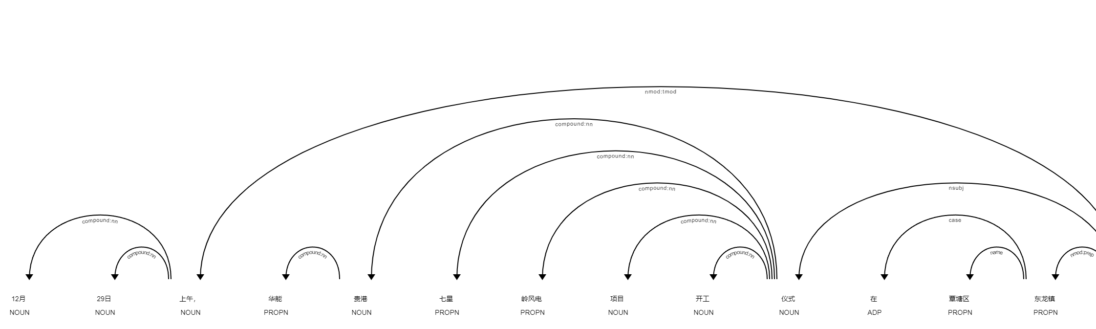 doc = nlp("12月29日上午,华能贵港七星岭风电项目开工仪式在覃塘区东龙镇举行。")